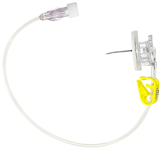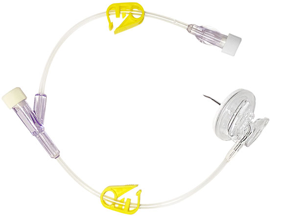 UNNOSAFE é um dispositivo de agulha, também conhecido como cânula com extensor, com dispositivo de segurança e injetor lateral para terapia medicamentosa em cateter totalmente implantável.