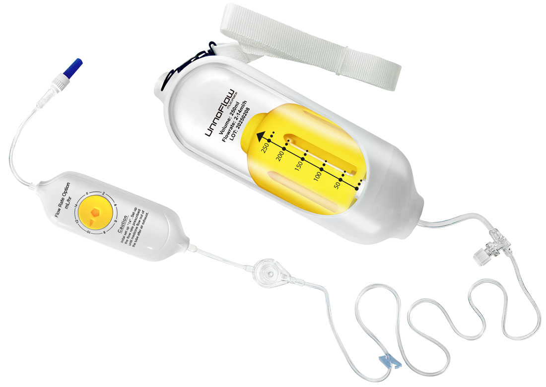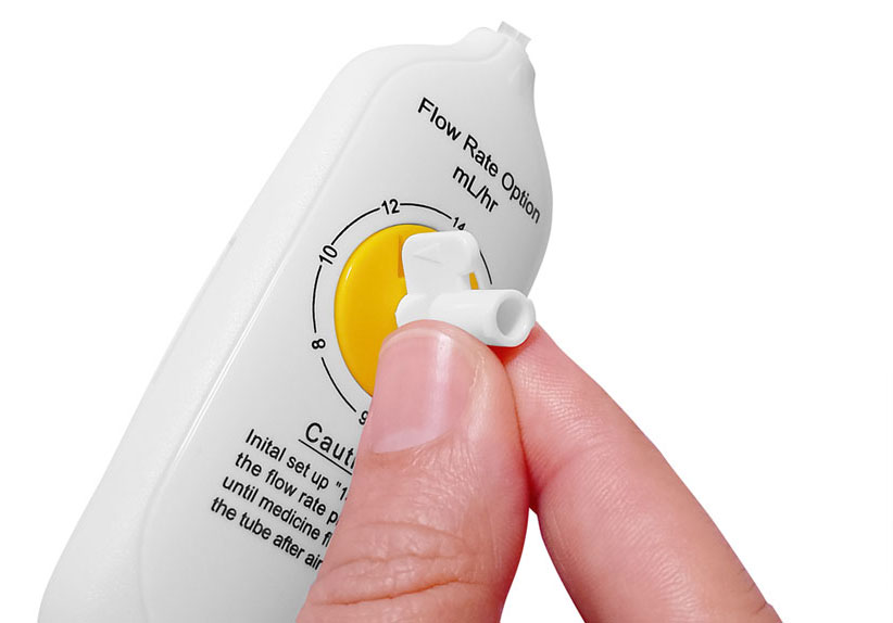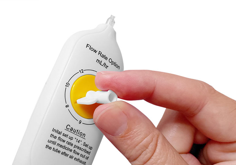 Bomba de infusão elastomérica de fluxo regulável, controle de fluxo variável com apenas uma mão.